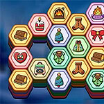 Puzzle de iarnă primitor în care elimini tabla stivuind trei hexagoane identice